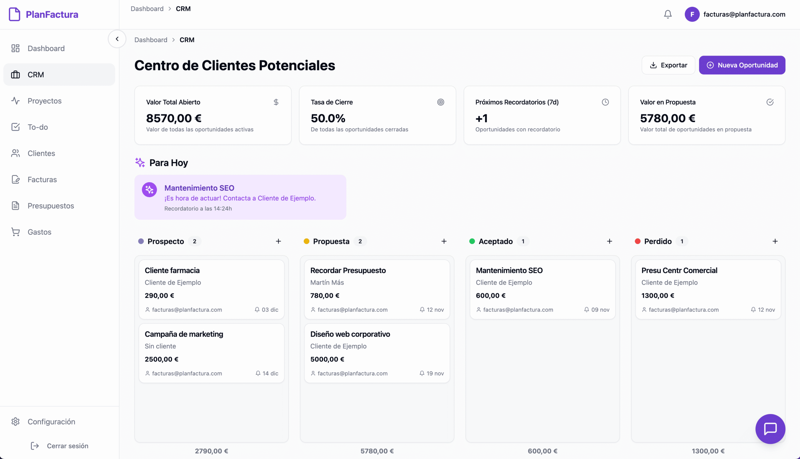 Presupuestos, CRM, gestión de tareas, clientes y proyectos con control de horas… todo lo que necesita un negocio moderno para funcionar sin complicaciones, desde un solo lugar.