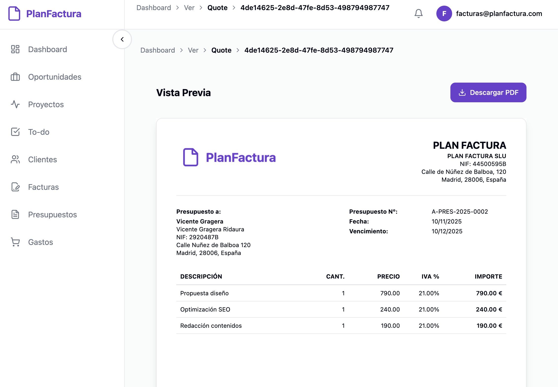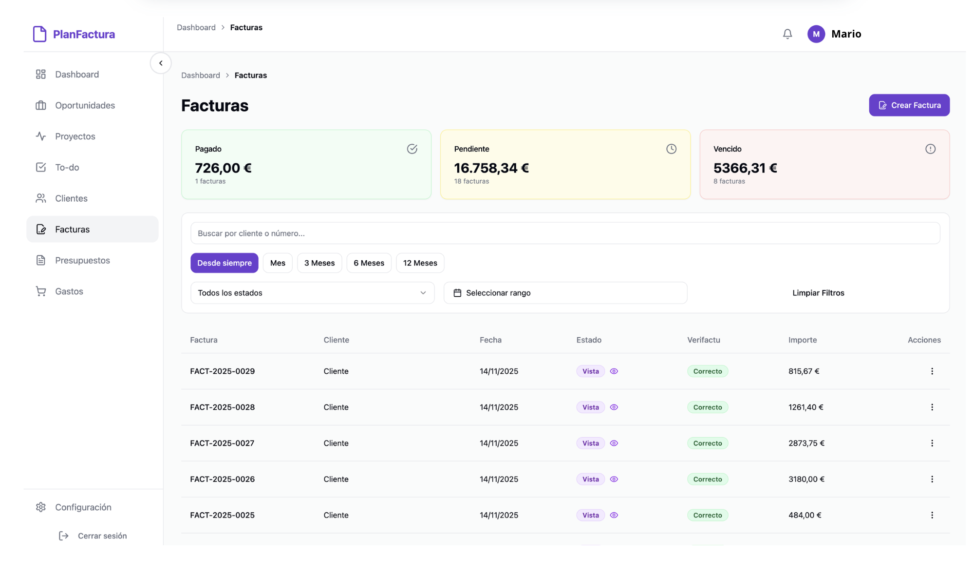 «Probé varios programas y PlanFactura es el único que junta facturación, gestión y cumplimiento legal de forma simple. El dashboard me da una visión clara del mes y puedo trabajar desde el móvil sin problemas.»
